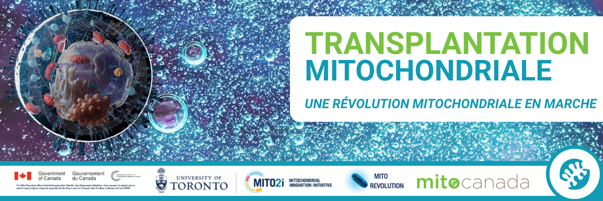 MitoCanada est fière d’être l’un des principaux partenaires de MitoRevolution, une initiative de recherche révolutionnaire de 23,8 millions de dollars financée par le Fonds pour la recherche sur les nouvelles frontières – Transformation (FRNF-T). Ce projet historique, dirigé par la Dre Ana Andreazza et l’équipe MITO2i de l’Université de Toronto, marque une avancée audacieuse dans le domaine de la médecine régénérative.